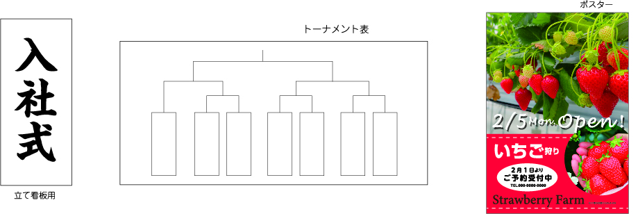 店内ポスターや、注意喚起の掲示物、大会のトーナメント表、