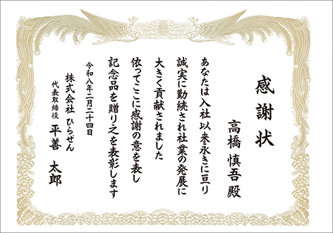 賞状用紙は、重厚感のある美しい輝きの鳳凰枠の用紙を使用しますので